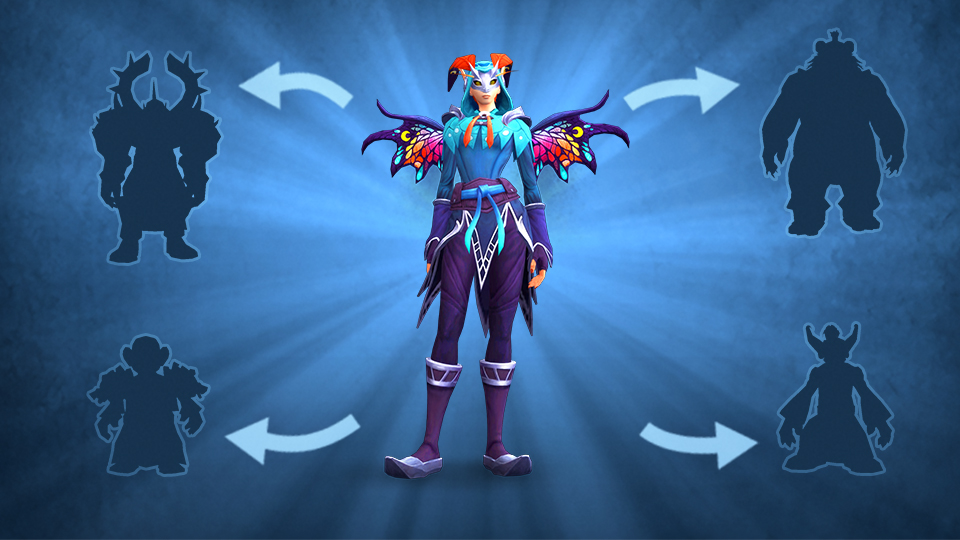 Après avoir acheté votre abonnement de 6 mois dans la boutique Blizzard, l’ensemble de transmogrification ailes de fée fléchetteuse rejoindra automatiquement votre collection en jeu. Accueillez cette apparence éblouissante dans votre collection !