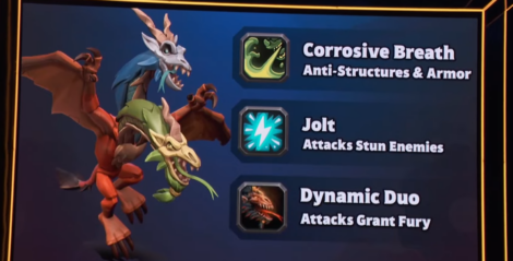 - Souffle corrosif (anti-structures et armure) : Inflige des dégâts significativement plus élevés aux tours, aux bâtiments et aux ennemis dotés d'une armure.