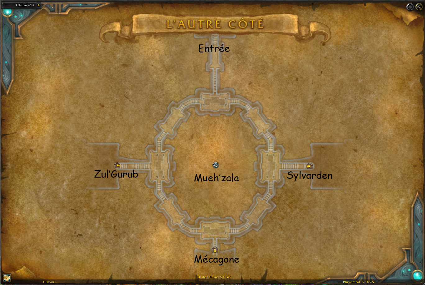 L’Autre côté est la deuxième zone instancière disponible à Sylvarden. Vous la débloquerez une fois le niveau 60 atteint. Ce donjon contient 4 boss, en commençant par Hakkar, l’écorcheur d’âmes, suivi des Tempête-de-Mana (Milhouse et Millificent), puis la Marchande Xy’exa pour finir par Mueh’zala.