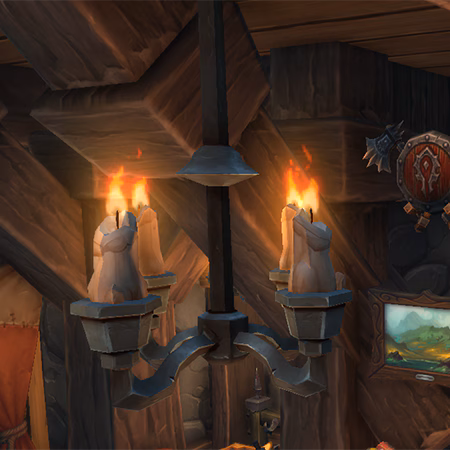 un chandelier en fer forgé, disponible au cap Fondateur (et son équivalent pour la Horde, le chandelier en chaîne de fer) ;