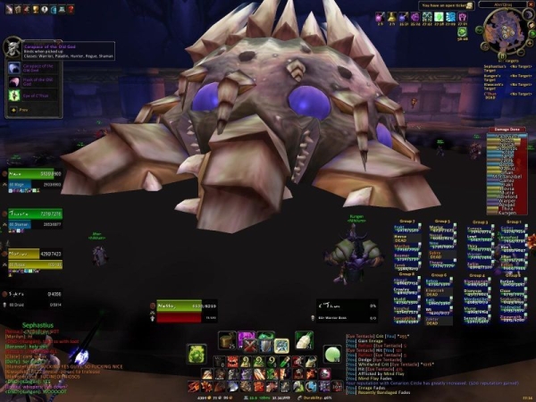 Ce raid fut implémenté en jeu lors du patch 1.9 (le 3 janvier 2006). Le Dieu très ancien C'Thun fut le second boss le plus dur à vaincre de Vanilla, tué par la guilde Nihilum (EU) le 25 avril 2006, après 113 jours de résistance.