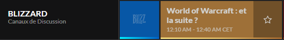 Notez que celle-ci sera visionnable sur tous les canaux de discussion, en plus de celui dédié à Blizzard. Le samedi 20 février, de 00h10 à 00h40 aura lieu le panel World of Warcraft : et la suite ?, que vous pourrez regarder sur le canal de discussion de Blizzard et de WoW, et qui reviendra en détails sur les nouveautés qui nous attendront au cours du possible Patch 9.1.