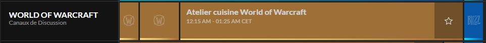 Le dimanche 21 février de 00h15 à 01h25 aura lieu le panel Atelier cuisine World of Warcraft, dans lequel la cheffe Lulaboo est aux fourneaux pour préparer des recettes inspirées par la cuisine et les ingrédients d’Azeroth. Vous pourrez la rejoindre pour apprendre à réaliser ces recettes chez vous !