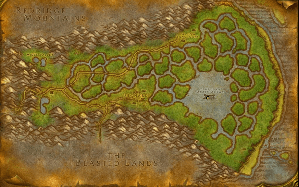 Emplacement du Temple d'Atal'Hakkar, au Marais des Chagrins, aux Royaumes de l'Est