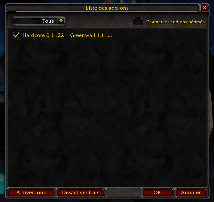 Ensuite, lancez WoW : Classic depuis votre launcher Battle.net, et vous verrez l'addon apparaître dans la liste consacrée, sur l'écran de sélection de votre/vos personnage(s).