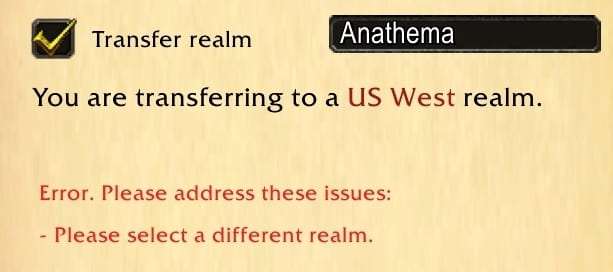 Alors que les personnages issus de royaumes PvP peuvent être transférés sur des royaumes PvE, l'inverse ne peut se produire (les personnages provenant de royaumes PvE ne peuvent être transférés sur des royaumes PvP).Service payant de transfert de personnageService payant de transfert de personnage