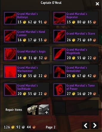 Enfin, le rang 14 bénéficie dorénavant de nouvelles armes. Cela a été fait dans le but de donner aux classes lanceuses de sorts une même diversité de sélection que les classes de mêlée. Quelques nouveaux objets réservés aux casters (lanceurs de sorts) ont également été ajoutés et peuvent être achetés par les joueurs ayant le grade