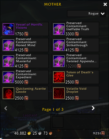 La liste de marchandises que propose D.A.M.E. a une rotation. En effet, elle change 2 fois par semaine, prenant le même rythme que les Assauts du Val de l'Éternel Printemps et d'Uldum.