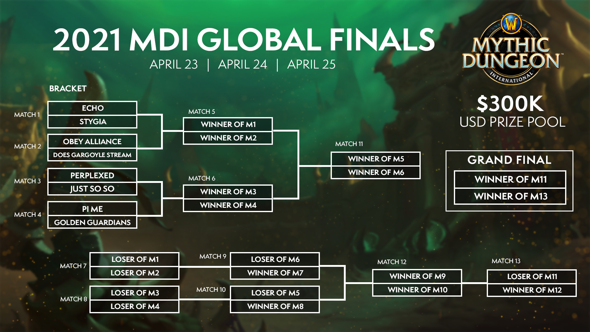 La finale mondiale de la saison 1 du Mythic Dungeon International (MDI) est arrivée ! Les huit meilleures équipes du monde se préparent à rivaliser de rapidité pour s’emparer d’une partie de la dotation de 300 000 $ et du titre de champions du monde au cours d’un évènement diffusé uniquement sur YouTube du 23 au 25 avril.