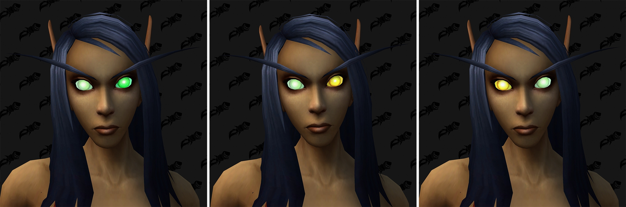 Les Elfes de Sang sont mis à l'honneur cette fois-ci, avec leurs nouvelles couleurs de peau, intensités pour l'iris et couleurs de cheveux.
