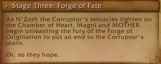 Alors que les tentacules de N'Zoth le Corrupteur se referment sur la Chambre du Cœur, Magni et D.A.M.E. s'apprêtent à déchaîner la fureur de la Forge des Origines pour mettre un terme aux plans du Corrupteur.