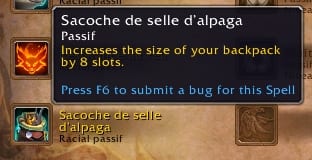 Ce trait racial nommé Sacoche de selle d'alpaga remplace le Kit de survie vulpérin.Mise à jour [22/11] à 16h19: Le trait racial s'est confirmé.