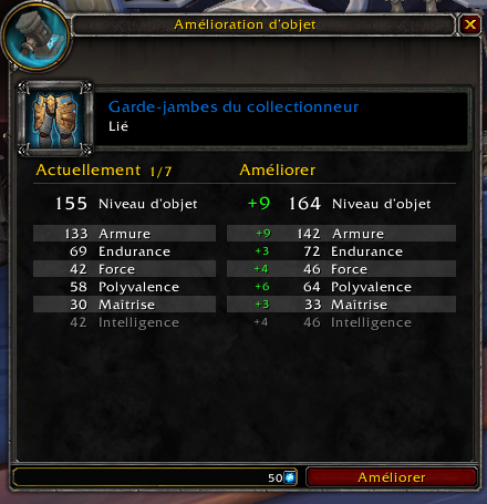 Amélioration de vos pièces d'équipement