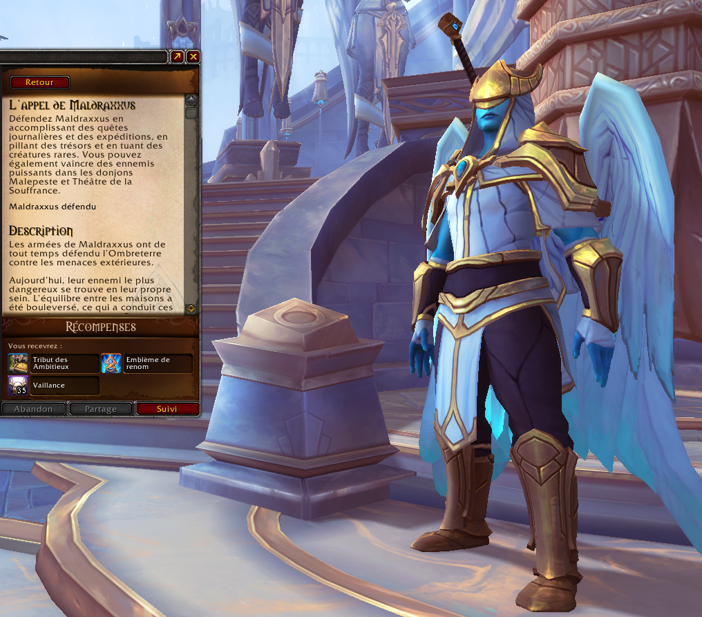 Plus vous obtiendrez des points de Vaillance, plus vous pourrez améliorer votre équipement jusqu'au niveau d'objet 220 (soit jusqu'au rang 12). Sachez que des prérequis sont indispensables et vous demande d'accomplir des hauts-faits. Notez également qu'un PnJ est désormais présent à Oribos et propose aux joueurs d'échanger leurs points de Vaillance contre des sacoches remplies de composants d'artisanat.