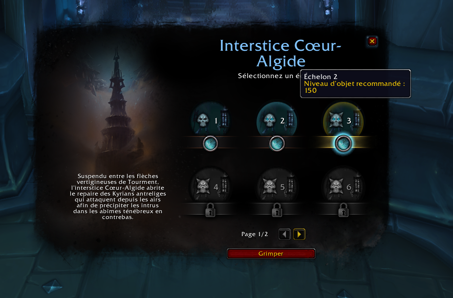 L'interface de sélection des échelons de Tourment, la tour des damnés, s'offre une amélioration mineure. En effet, vous pouvez à présent consulter le niveau d'objet conseillé afin de réaliser un échelon.