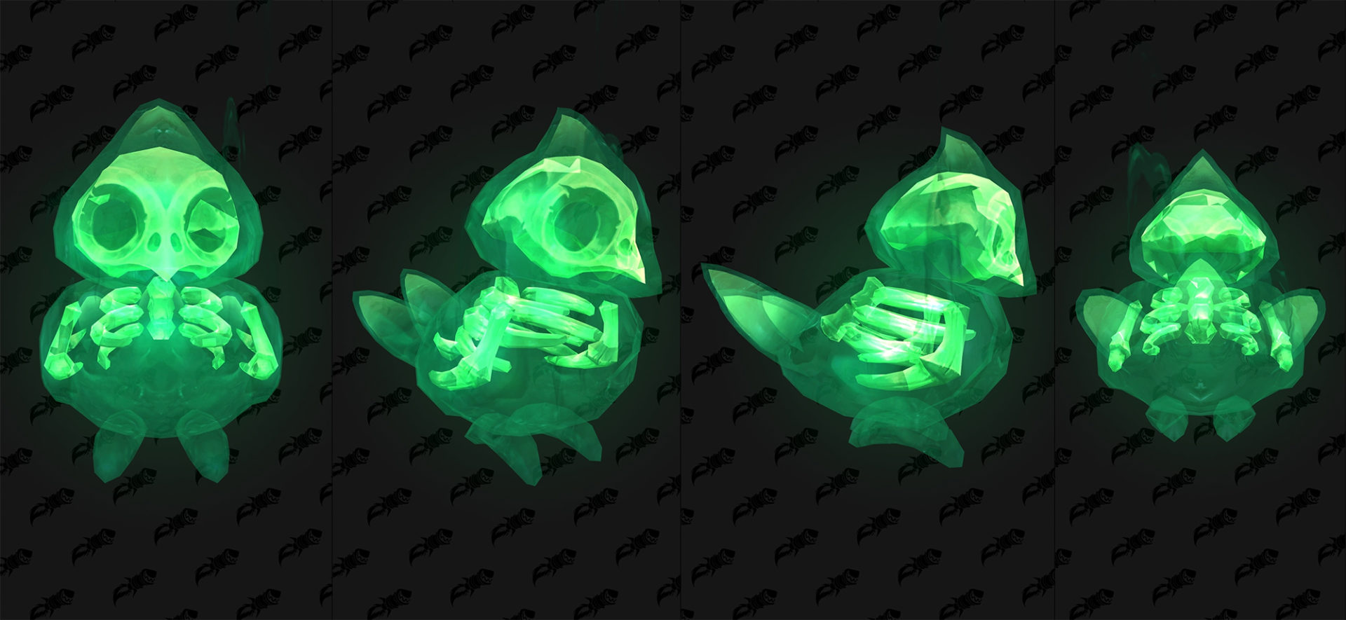 Commençons par Pépé, qui est de retour. Quatre modèles différents de ce subliminal compagnon ont été dataminés, chacun aux couleurs des 4 congrégations de l'Ombreterre.
