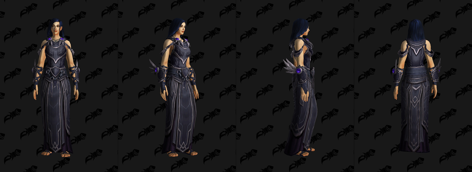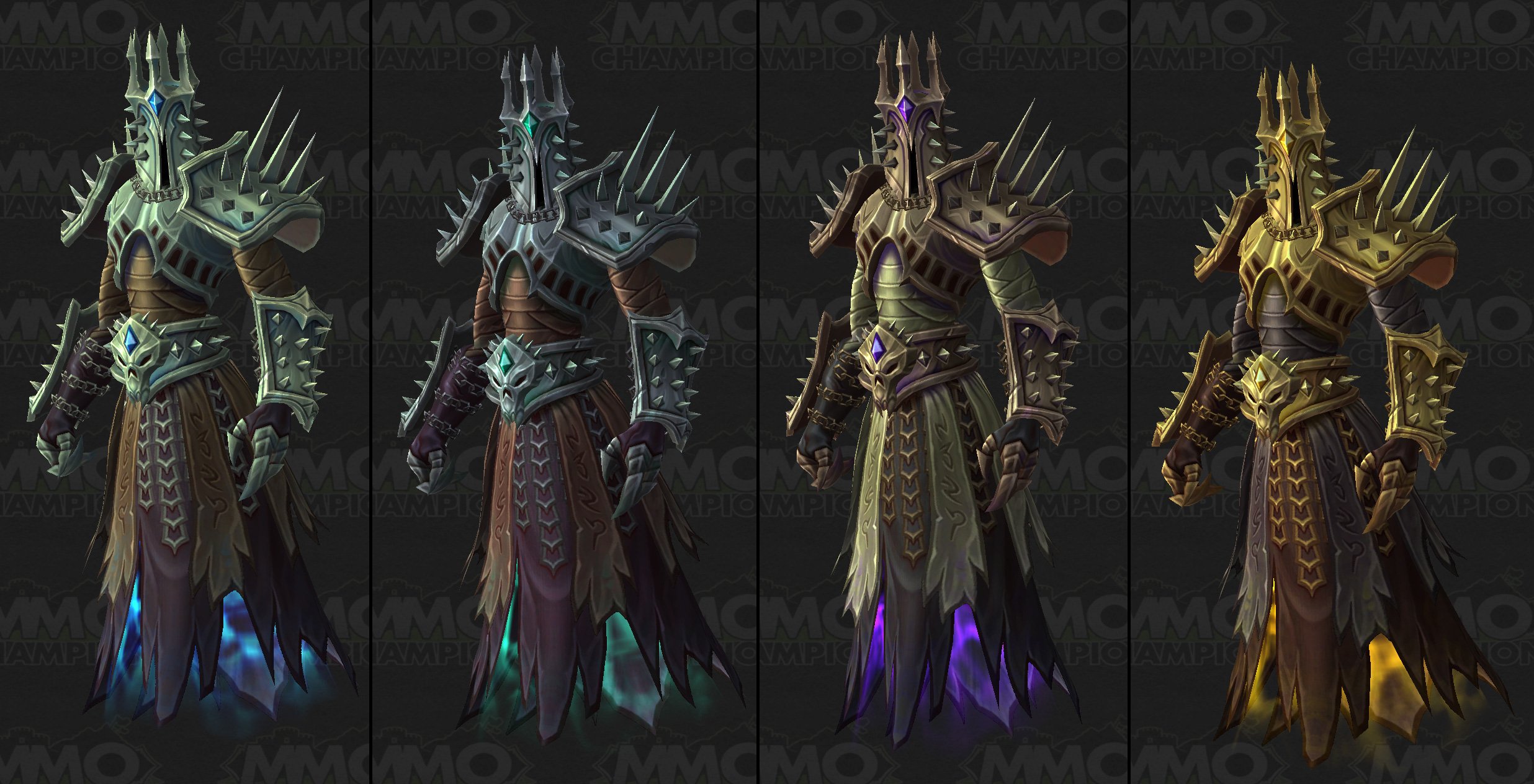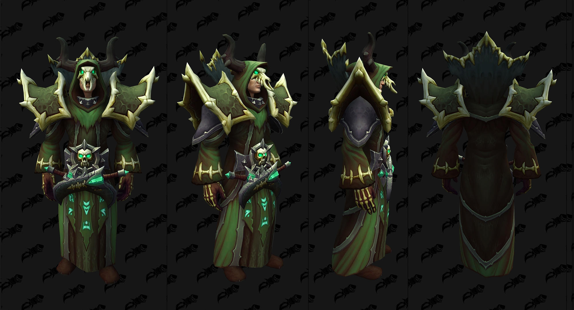 - De plus, de nouveaux ensembles ont été dataminés, également présents sur le PTR, par le biais de l'interface de votre collection d'apparence. Leur mode d'obtention reste pour le moment inconnu, bien qu'il puisse être lié aux nouveaux niveaux de Renom ou à la nouvelle campagne de congrégation vous menant jusqu'à Korthia. Notez que nous avions eu un aperçu de ces apparences inédites lors de la BlizzConline 2021.