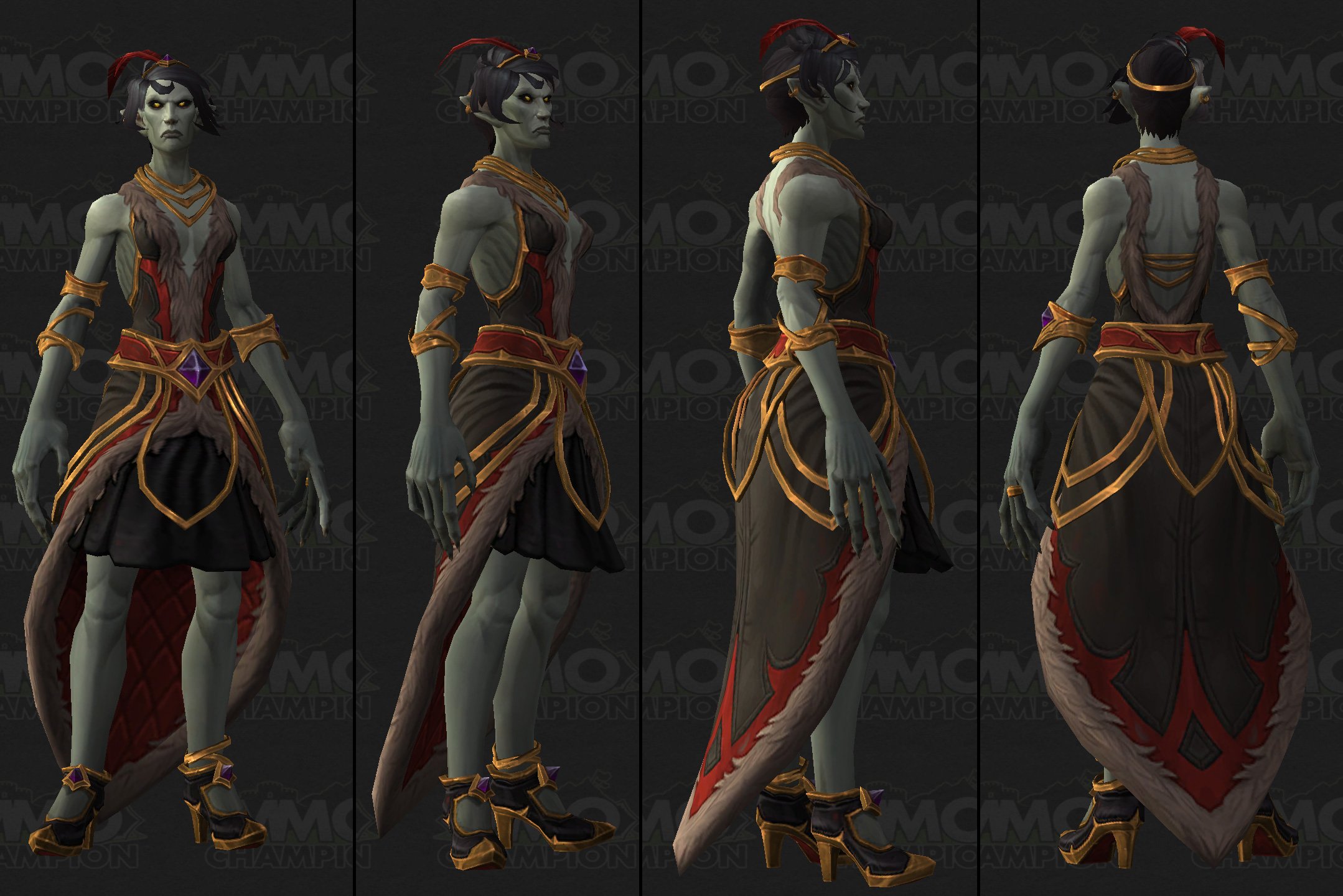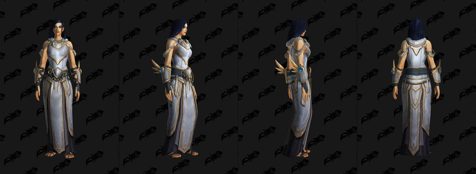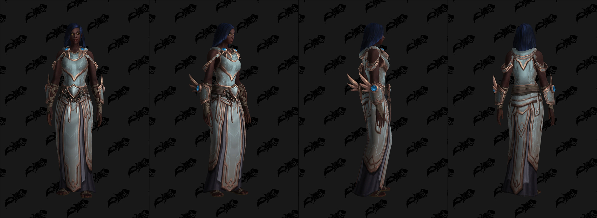 - De plus, de nouveaux ensembles ont été dataminés, également présents sur le PTR, par le biais de l'interface de votre collection d'apparence. Leur mode d'obtention reste pour le moment inconnu, bien qu'il puisse être lié aux nouveaux niveaux de Renom ou à la nouvelle campagne de congrégation vous menant jusqu'à Korthia. Notez que nous avions eu un aperçu de ces apparences inédites lors de la BlizzConline 2021.
