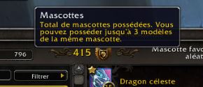 Blizzard a supprimé la restriction des 2 000 mascottes de combat pour votre compte et permet désormais aux joueurs d'ajouter autant de mascottes qu'ils le veulent à leur collection. Cependant, vous ne pouvez toujours pas obtenir plus de 3 exemplaires de chaque mascotte.