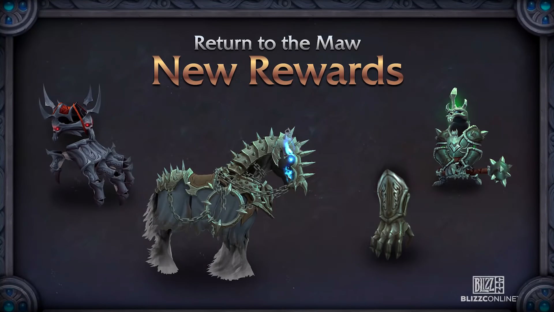De nombreuses récompenses JcJ saisonnières apparaîtront, et incluent de nouvelles couleurs pour les montures de gladiateur et des hauts-faits accomplis en clés de pierre mythique +, ainsi que des montures gorms vicieux reprenant les thèmes de l’Alliance et de la Horde.