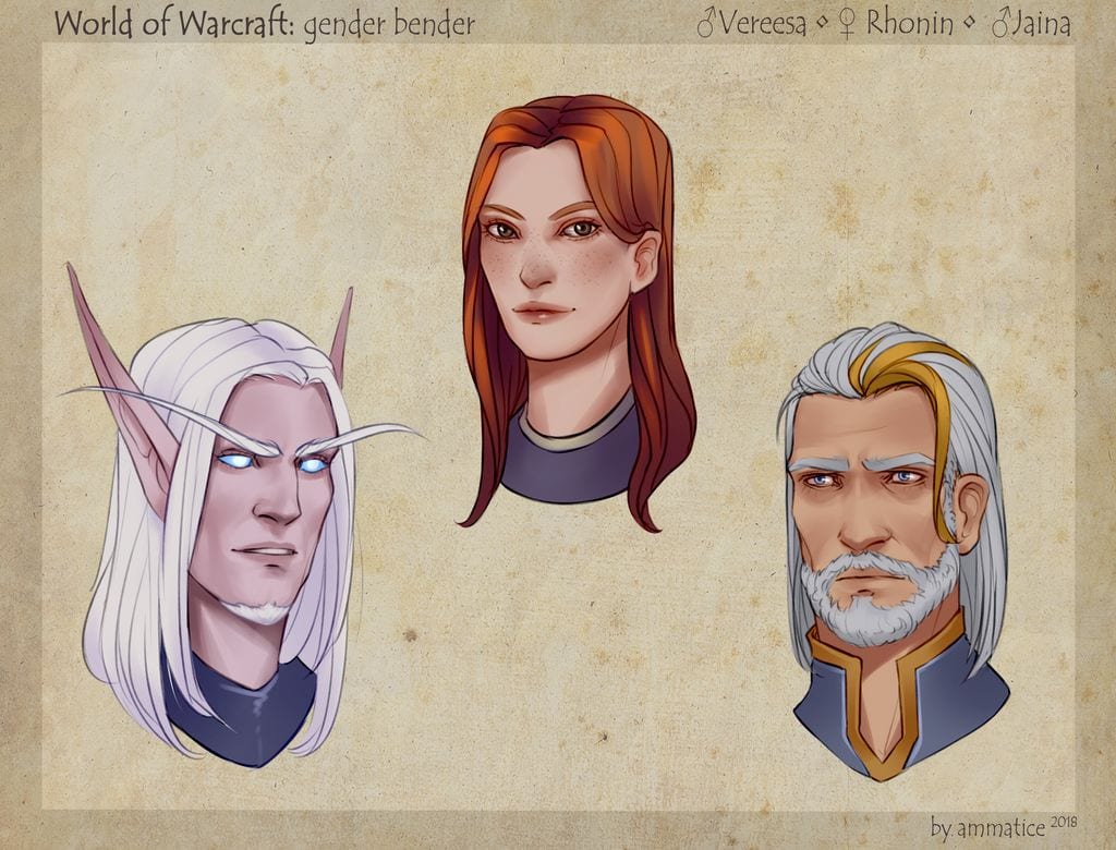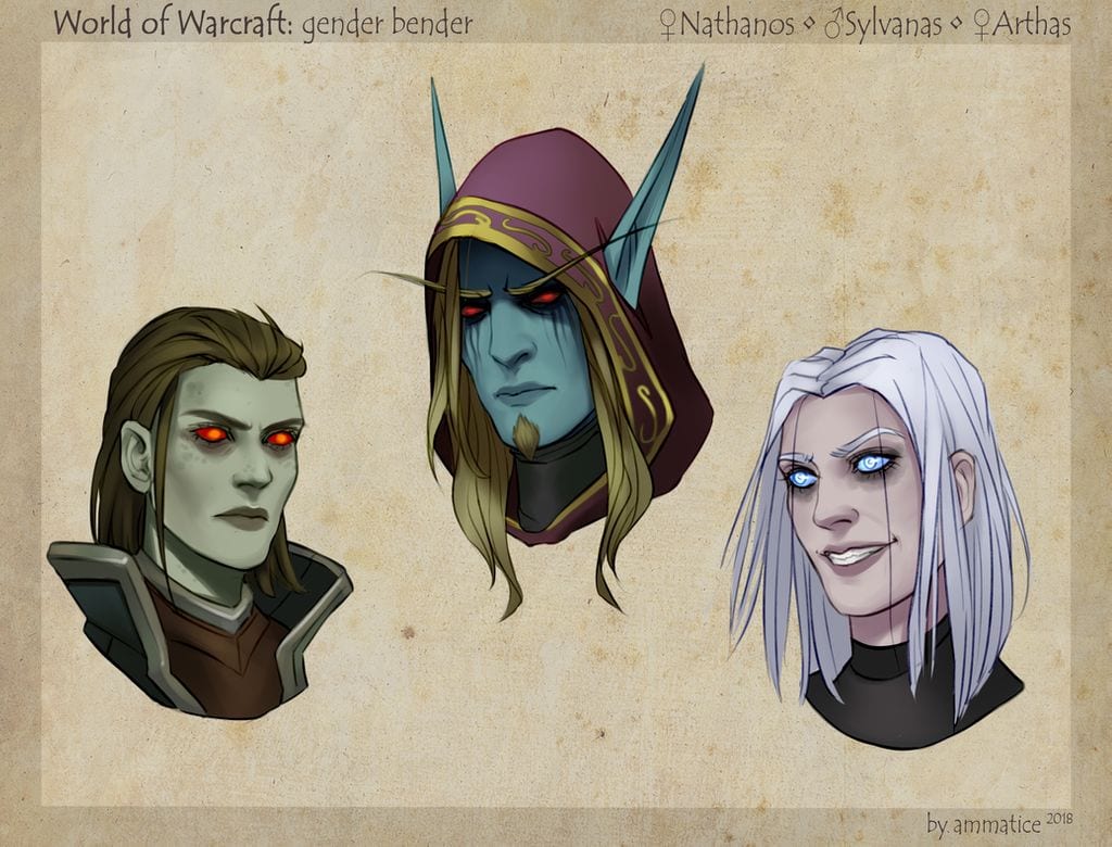 (Illustration N°5 représentant Nathanos en femme / Sylvanas en homme / Arthas en femme)
