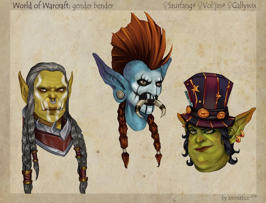 (Illustration N°3 représentant Varock Saurcroc en femme / Vol'jin en femme / Gallywix en femme )