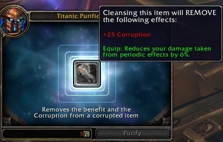 Une nouvelle quête a été repérée, servant d'introduction à la Purification Titanesque. Ce sort permet de "nettoyer" tout objet corrompu de ses effets positifs et négatifs.