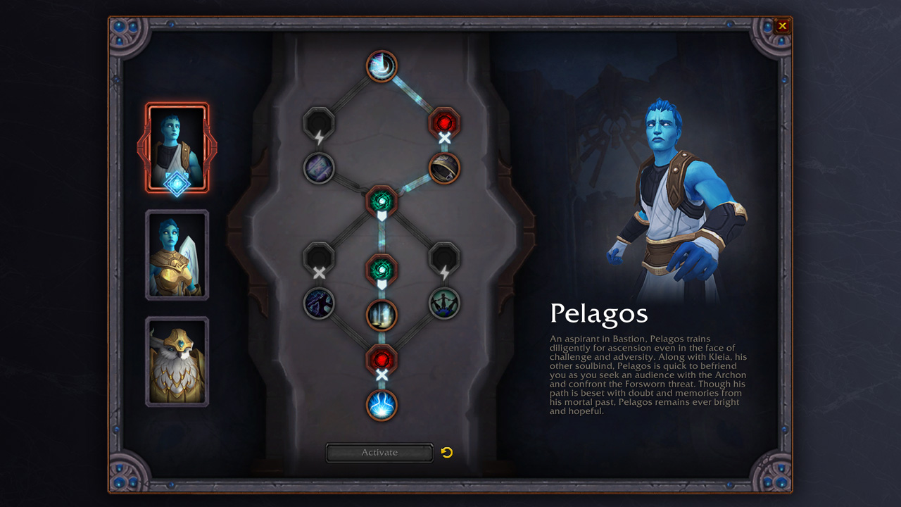 Chaque membre de la congrégation des Kyrians a accès à la voie de l’Ascension afin de mettre leurs liens d’âme à l’épreuve. Dans la peau de Pélagos, Kléia ou Mikanikos, vous devrez tirer profit de leurs capacités respectives afin de triompher des monstruosités qui vous feront face. Vous aiderez vos liens d’âme en rassemblant les matériaux nécessaires à l’invocation ou à la capture d’un boss, ainsi que des outils leur permettant d’équilibrer le rapport de force.