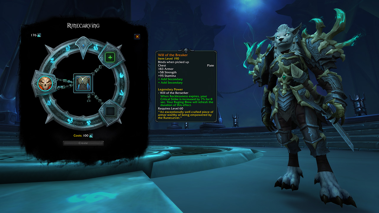 Les spécificités des objets légendaires et les ressources nécessaires à leur fabrication sont en développement et susceptibles de changer ; consultez les mises à jour régulières publiées sur worldofwarcraft.com avant la sortie de Shadowlands.