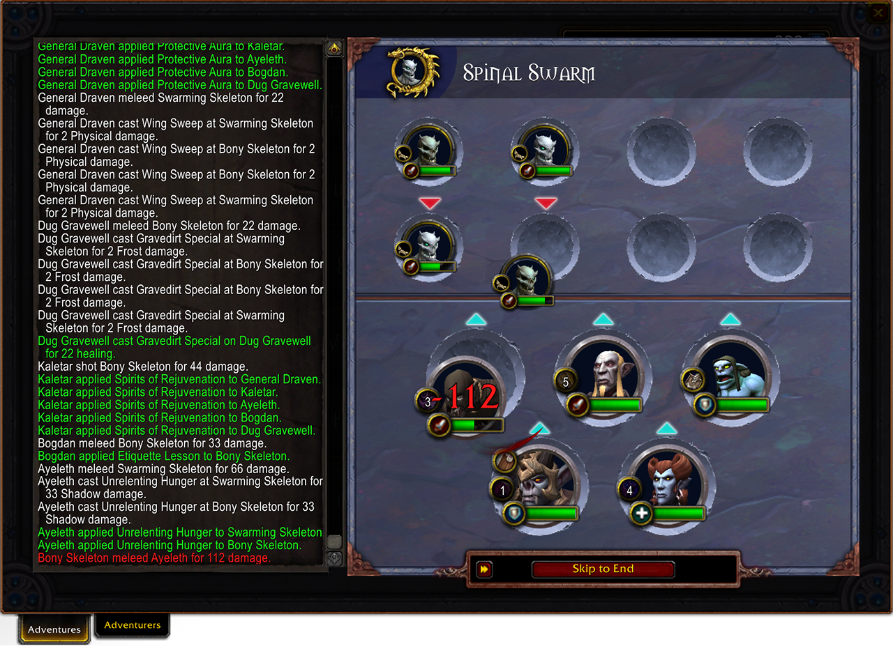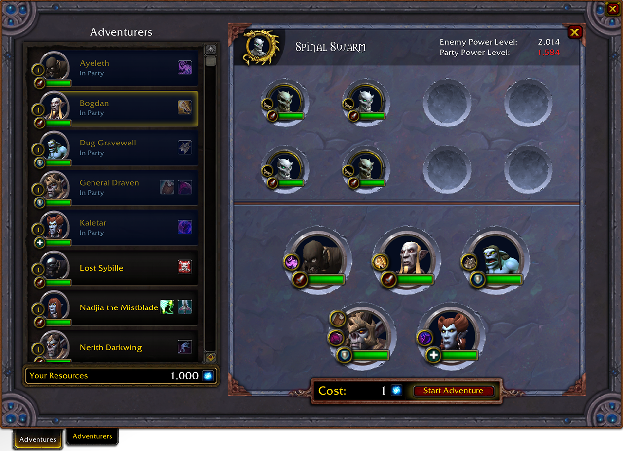 Préparez-vous à mettre vos compétences tactiques à l’épreuve. Dans les nouvelles aventures de Shadowlands, vous enverrez vos alliés en Ombreterre relever des défis uniques pour le compte de votre congrégation. Vous devrez aborder ces combats particuliers avec stratégie, choisir vos troupes avec soin, et disposer judicieusement de leurs compétences pour assurer le succès de ces missions.