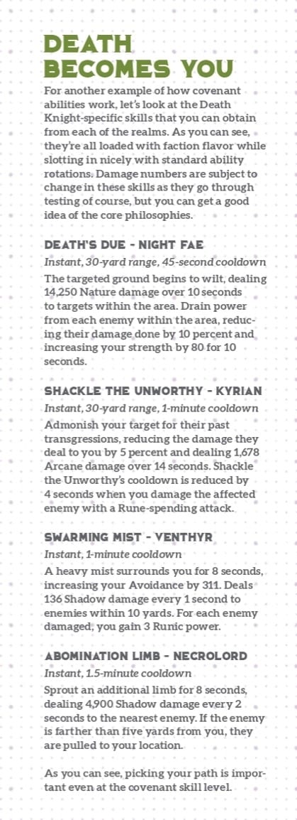 Dans un nouveau numéro spécial nommé "The Blizzard Issue", Gameinformer a révélé le nouveau sort du Chevalier de la mort lié à chaque congrégation (soit quatre nouvelles techniques).