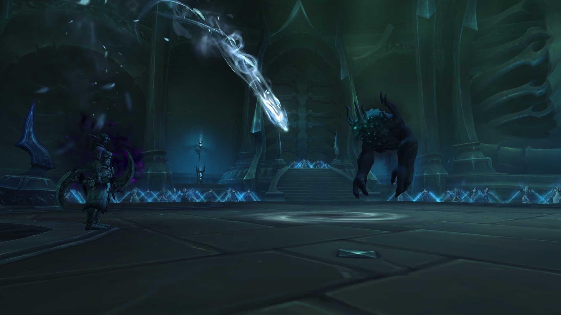 La récupération de Tyrande Murmevent. Vous trouverez Tyrande dans les Chambres aux Fractures, se précipitant en avant et laissant un énorme carnage derrière elle. Après avoir traversé quelques pièges, vous commencez à voir les âmes elfiques.
