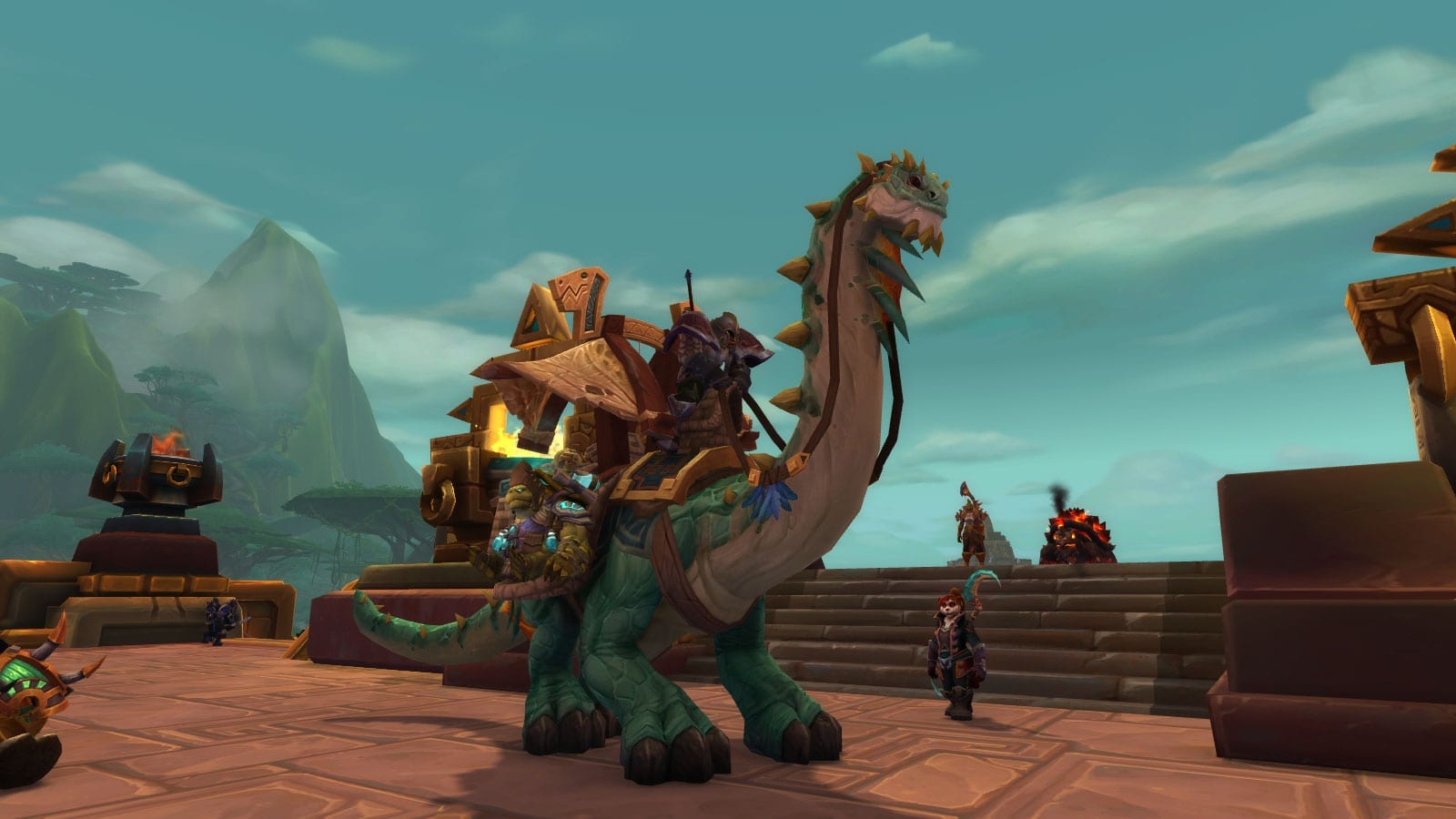 Vendue depuis Battle for Azeroth par des vendeurs de Zandalar et Kul'Tiras a un prix assez élevé, la monture du brutosaure de caravane ne sera malheureusement plus disponible à partir de Shadowlands.