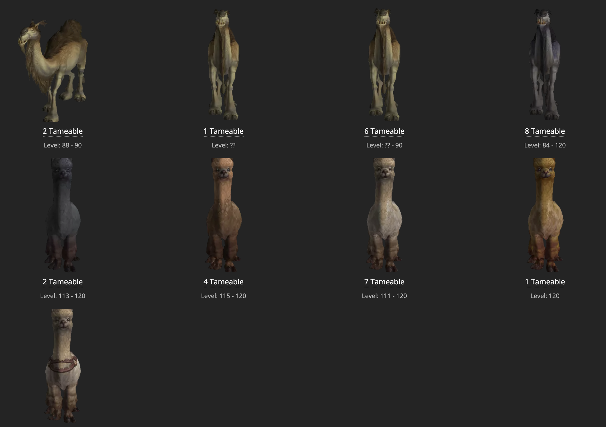 Plusieurs Chameaux tels que ceux d'Uldum ou même les alpagas de Battle for Azeroth seront domptables.