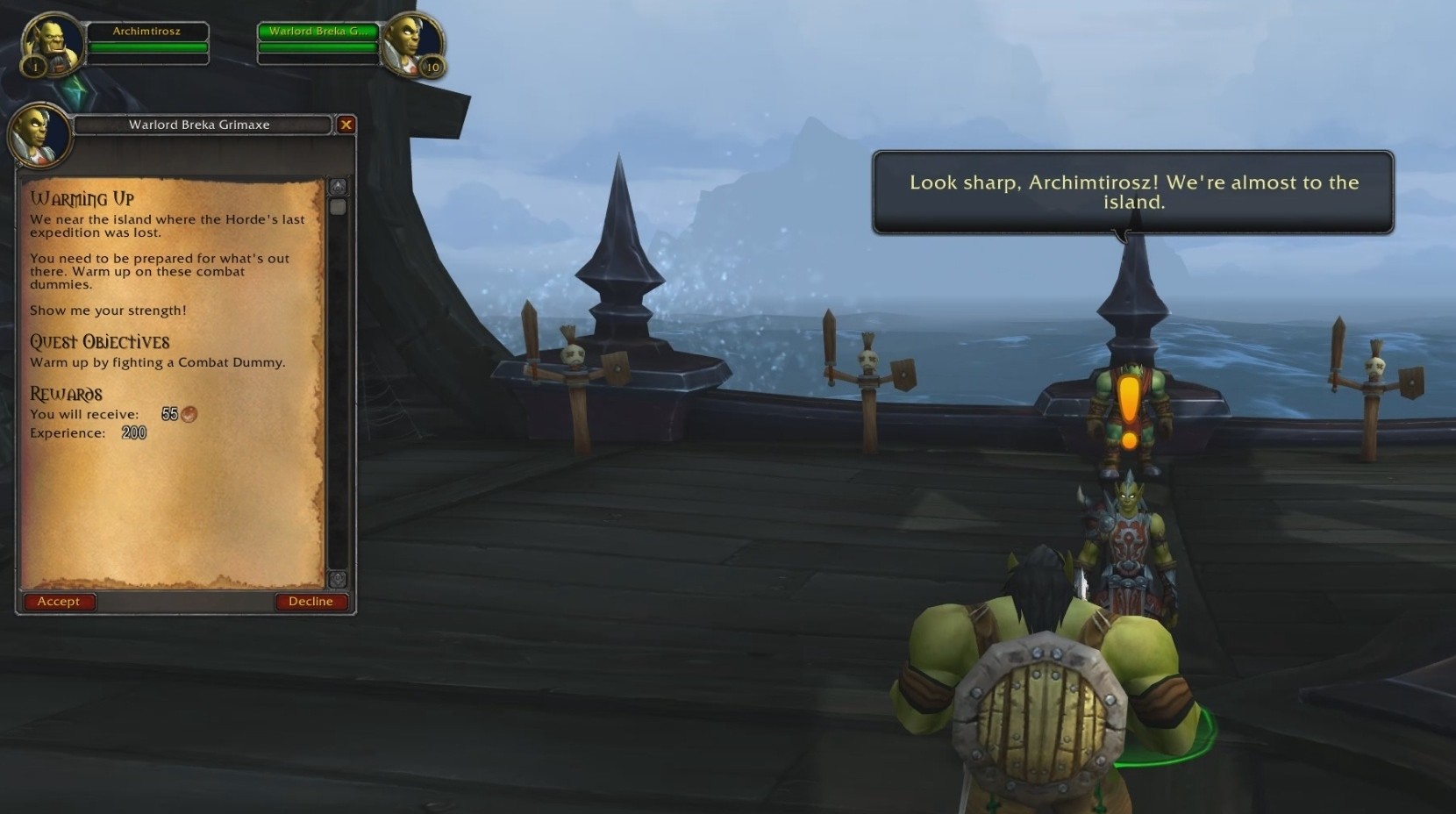 Depuis le dernier build déployé hier soir, les membres de la Horde peuvent accéder à cette île, mais il semblerait que chacune des quêtes y soient identiques à celles de l'Alliance. Seuls les PNJ y sont bien évidemment différents, remplaçant les humains par des orcs, mais le scénario entre les deux factions reste le même globalement parlant.
