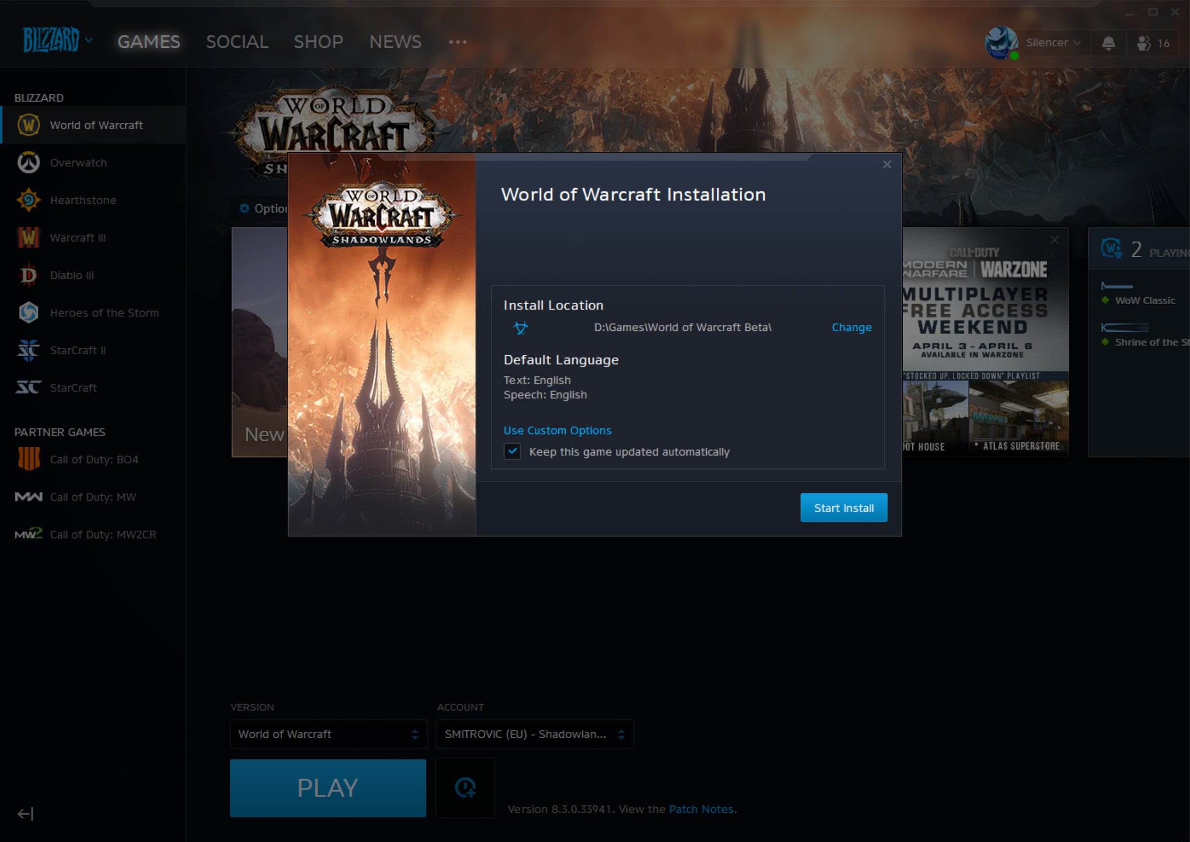 Ce samedi 4 avril, l'application Battle.net a été mise à jour afin de configurer la prochaine extension. En effet, ce build a permis de mettre à jour les fichiers du catalogue du launcher dans le but de prendre en charge l'installation de la bêta de Shadowlands dont une comprend des builds pour le public et une autre pour les développeurs.