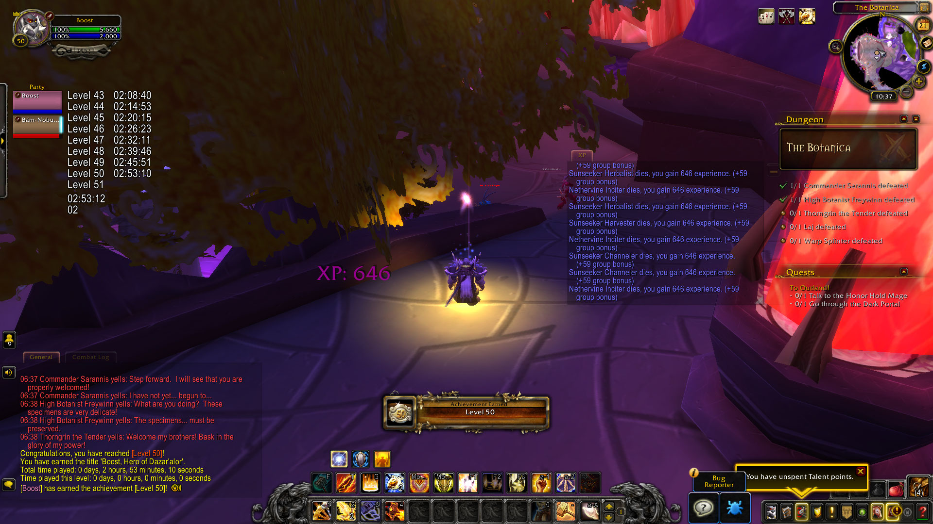 MrGM a bien entendu révélé la manière dont il s'y est pris : il a bénéficié d'énormément de boost provenant des donjons de l'extension The Burning Crusade, dont les Remparts des Flammes infernales du niveau 10 à 20, puis de La Botanica du niveau 20 à 50.