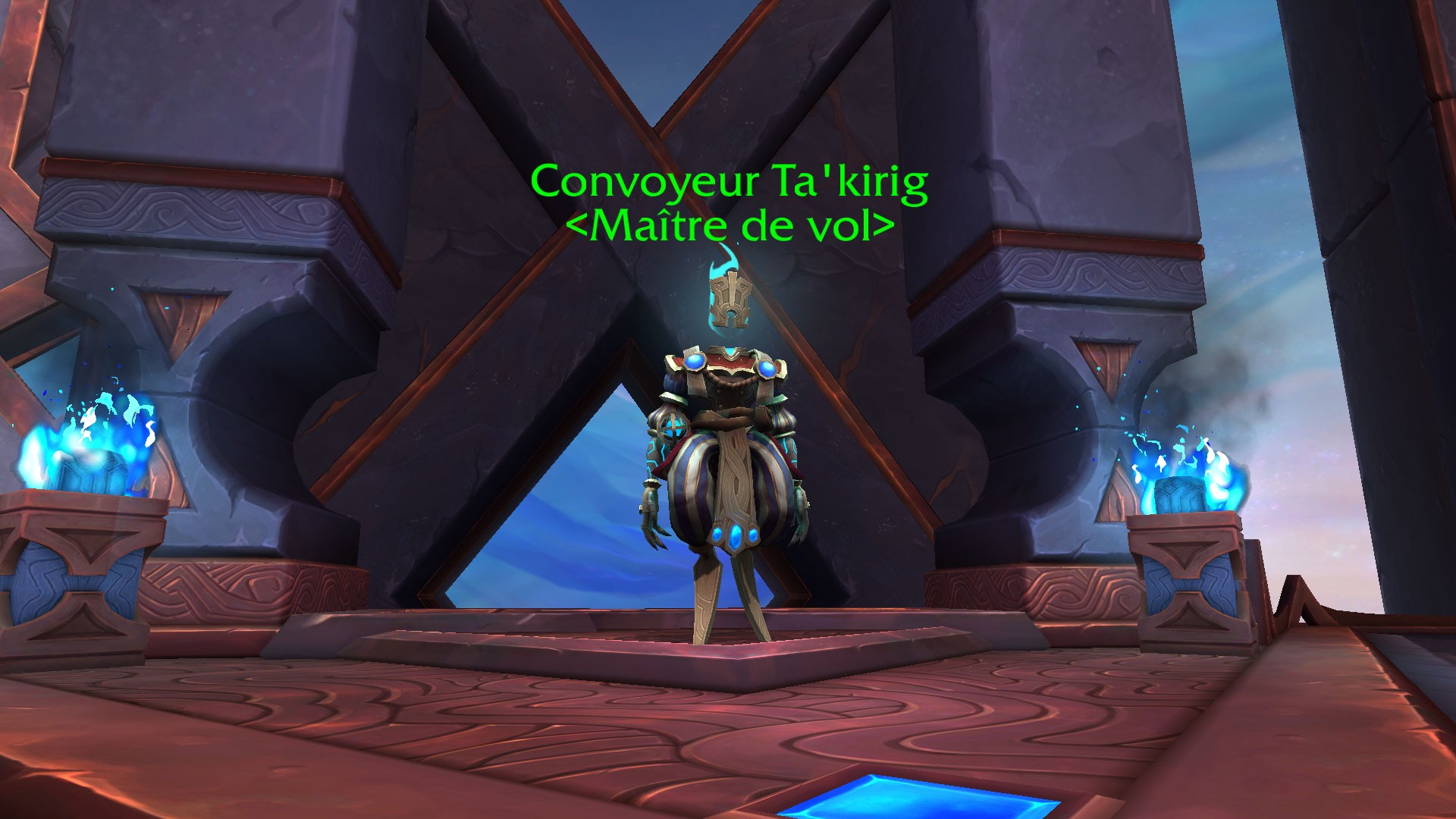 En cliquant sur l'un de ces portails ou en parlant au Maître de vol, vous chevaucherez automatiquement un Wyrm éternel ensorcelé et volerez jusqu'à la passerelle de la zone respective. Suite à cela, un effet inédit se déclenchera durant plusieurs secondes. Durant celui-ci, porté par le Wyrm, celui-ci suit un chemin d'Anima, le menant dans la zone que vous avez choisi.