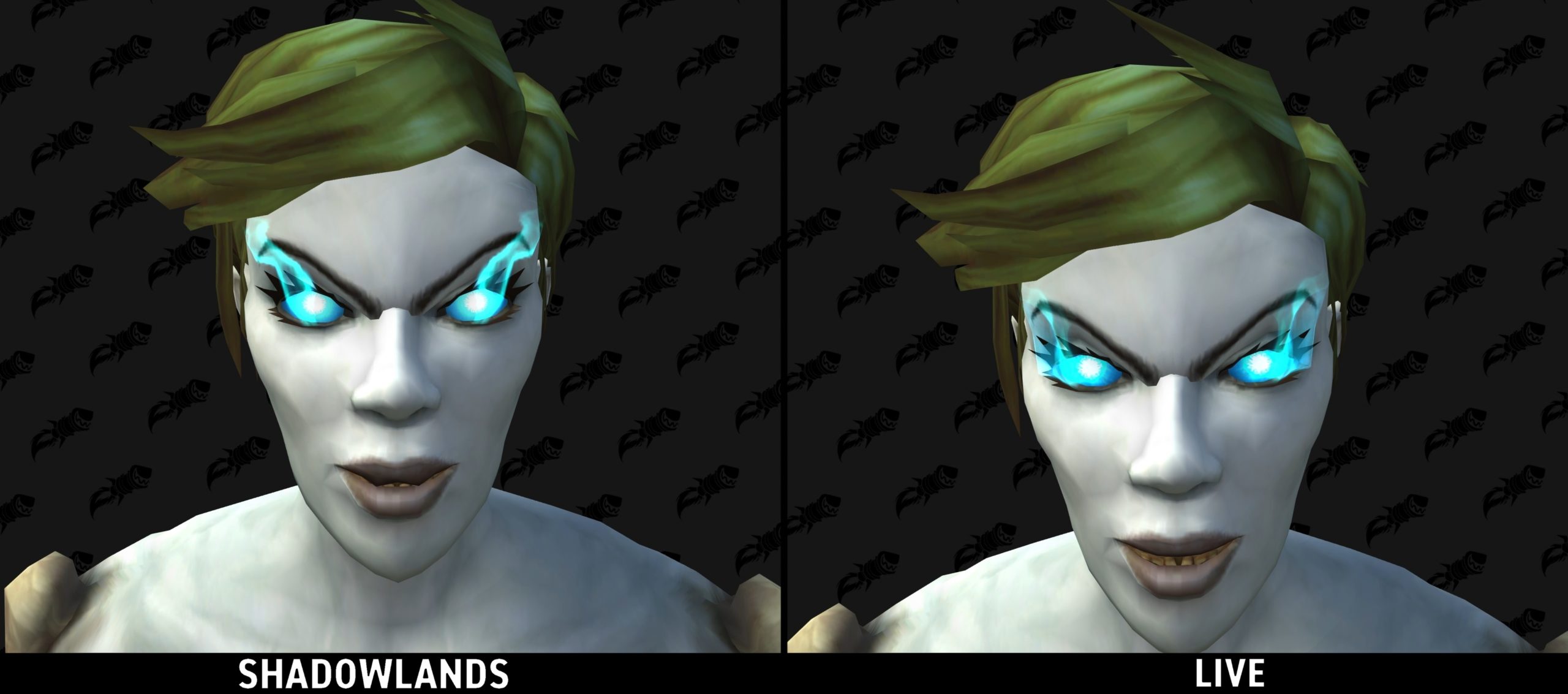 Shadowlands : Nouvelles lueurs des yeux pour le Chevalier de la Mort Publié par Raydjahs le 30 avril 2020 à 17:22 - Mis à jour le 28 janvier 2026 à 12:21 Tout comme pour le Patch 8.3, la brillance des yeux du Chevalier de la Mort a encore une fois été améliorée à Shadowlands. En effet, la lueur est un peu plus prononçée sur les modèles de l'Alpha que sur les serveurs live de Battle for Azeroth.