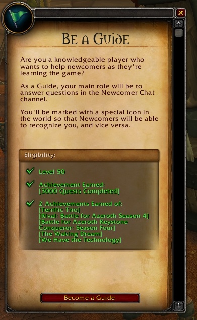 Lors du dernier build de Shadowlands, le système de Guide du Nouveau venu a été mis à jour avec de nouvelles exigences pour ceux qui veulent guider les nouveaux joueurs.