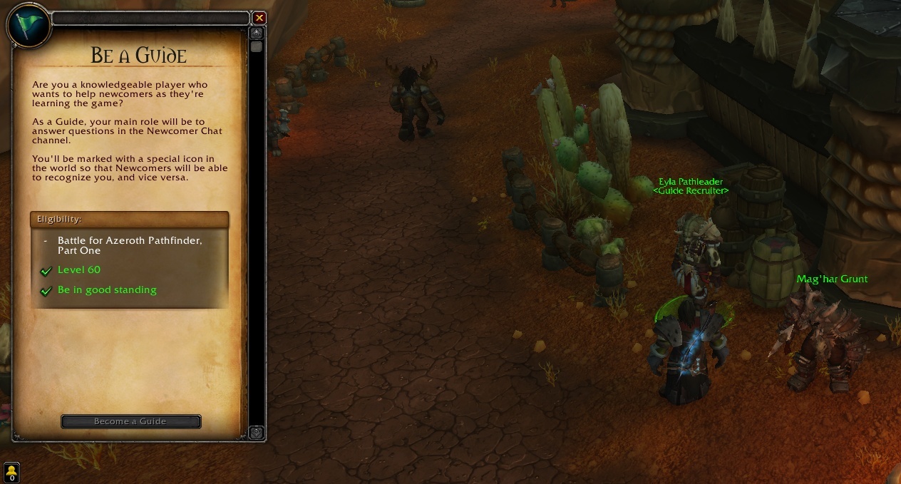 avoir terminé le première partie du guide de Battle for Azeroth (indisponible sur la bêta) ainsi que d'avoir un compte sans reproche.