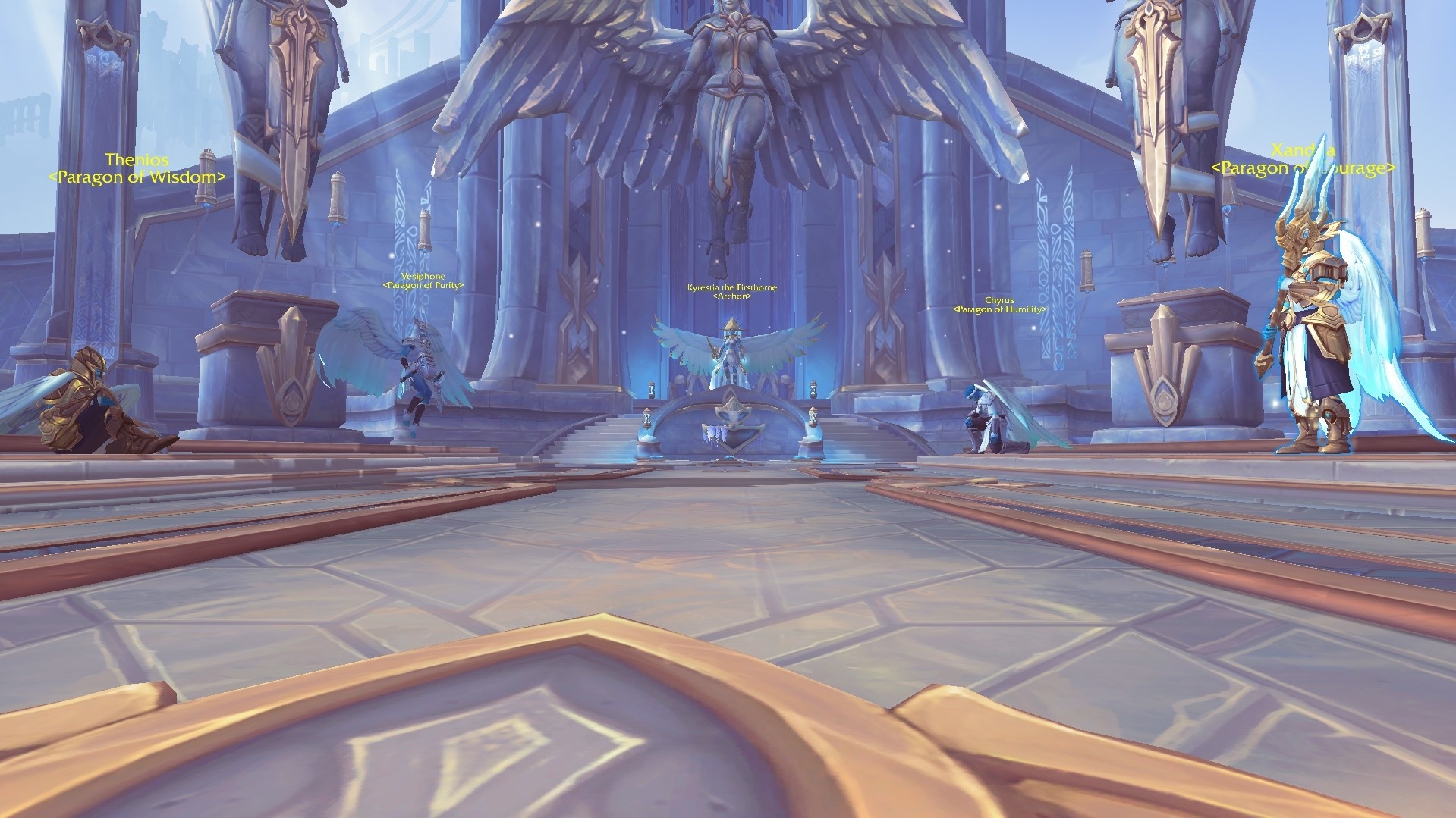 La grâce de Kyrestia. Uther doit être gardé sous observation constante, car seule l'Archonte décide de son sort ultime. Alors que nous escortons Uther, il parle des choses dont il peut encore se souvenir malgré sa formation dans les rangs Kyrians… dont sa mort aux mains d'Arthas Menethil.