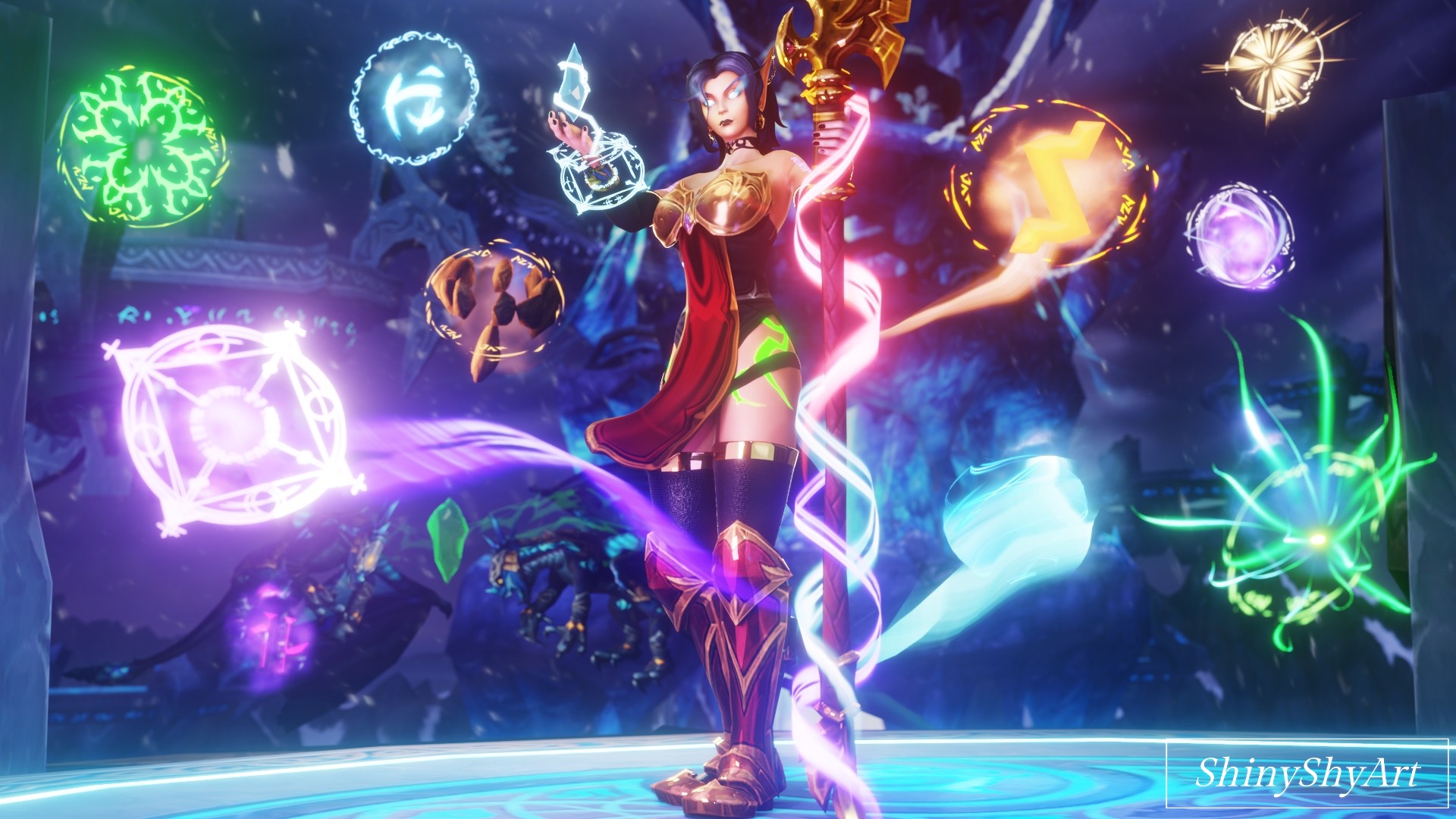Shy, ou ShinyShyArt, est une artiste 3D allemande jouant à World of Warcraft depuis de très nombreuses années, ayant toujours eu un penchant pour l'histoire et les personnages. Son aventure d’illustratrice 3D a commencé en 2022 avec l'idée de raconter celle de ses propres personnages. Ces derniers ont en effet grandi avec elle et effectué une grande partie du voyage en jeu en sa compagnie.