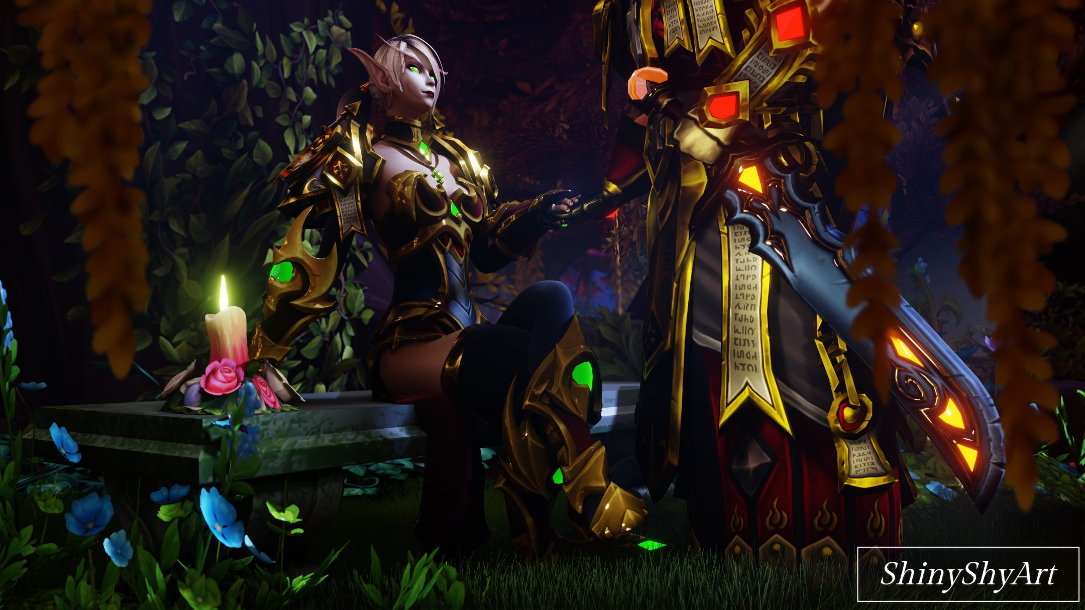 Pour la petite anecdote, le personnage que vous voyez représenté ici est Ash Dawnblade, qui est celui du compagnon de ShinyShy, marié dans son lore à sa Paladine.