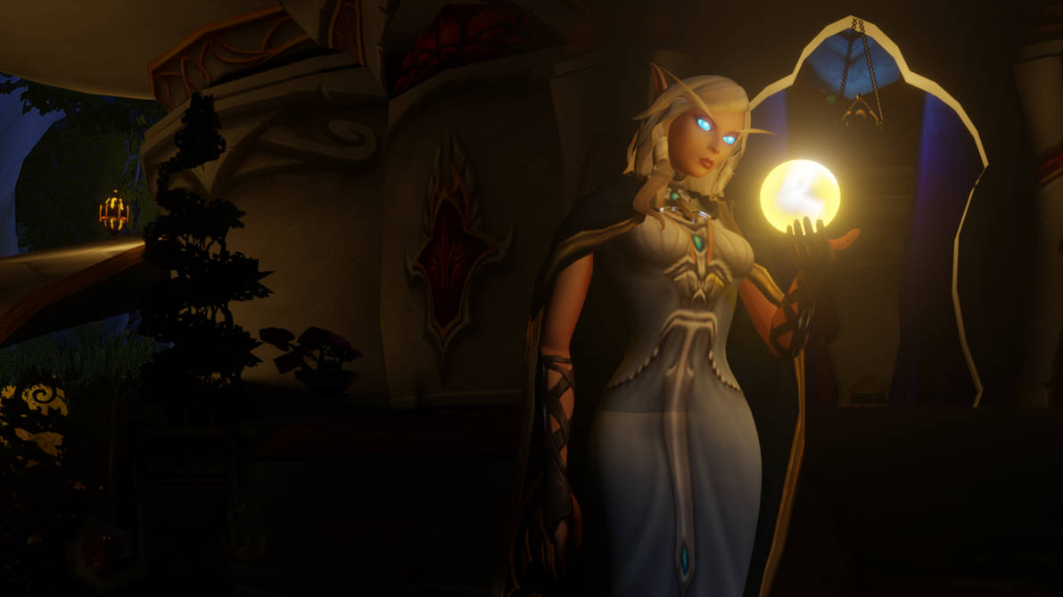 Ici, l’artiste a mis l’accent sur l’assombrissement prononcé autour de la prêtresse Haut-elfe Kieara.