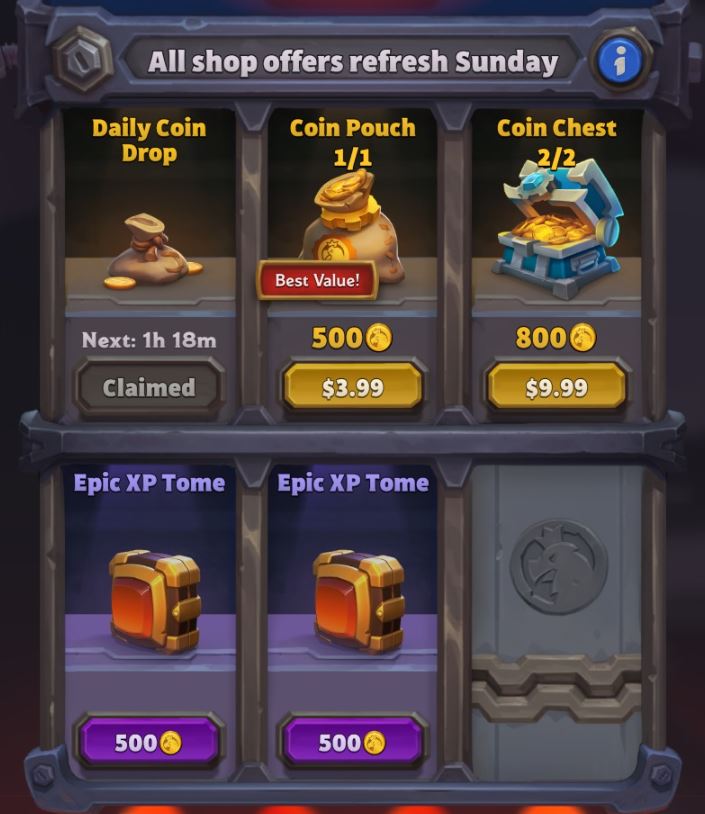 - Si les joueurs ont rencontré des problèmes pour terminer le tutoriel, ils devraient maintenant avoir assez d'or pour acheter leur première figurine après la mise à jour du jeu.