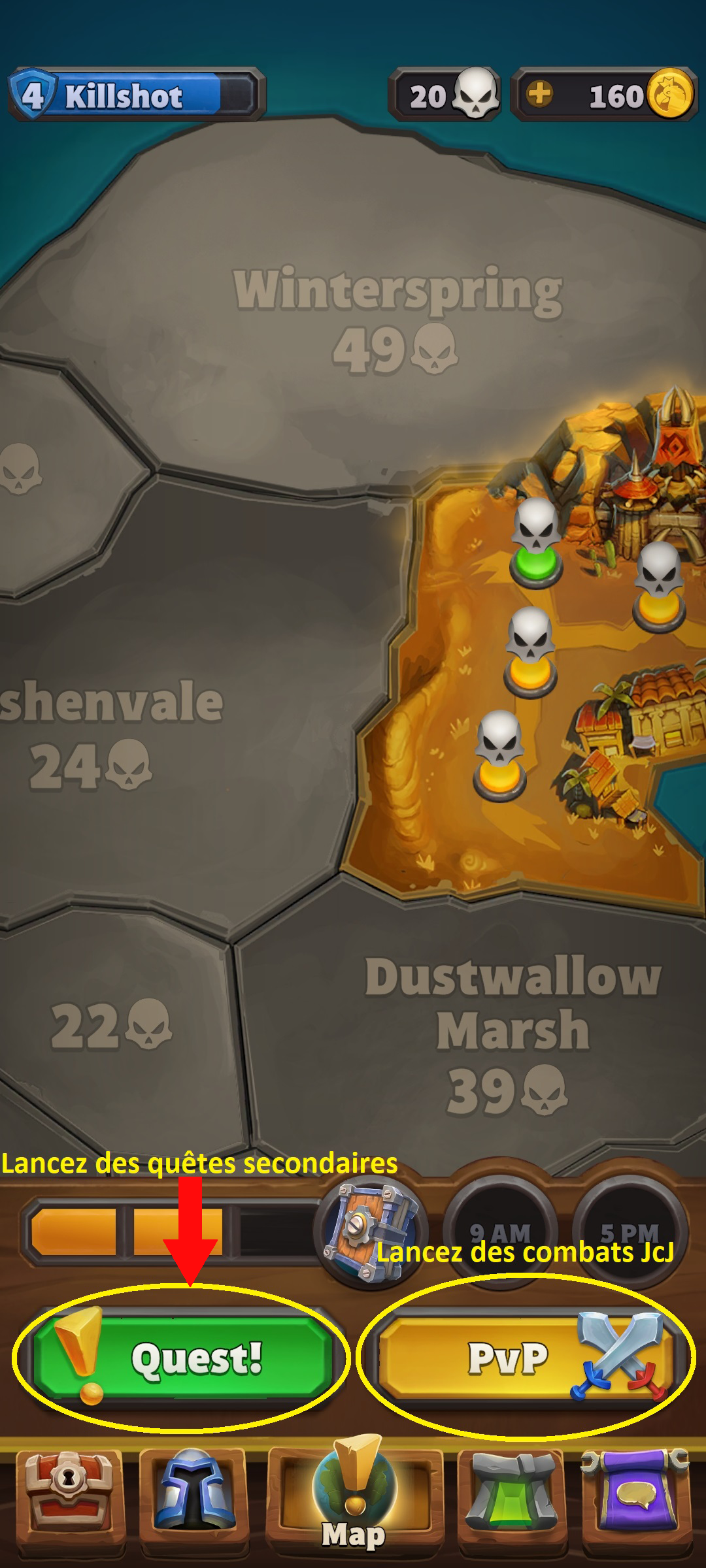 Obtenez des pièces d’or et des tomes renfermant de l’EXP à utiliser pour renforcer vos troupes. Pour cela, terminez des quêtes journalières, et ce quel que soit le niveau de votre armée. Faites preuve de rapidité, car les quêtes journalières sont éphémères et finissent par disparaître.
