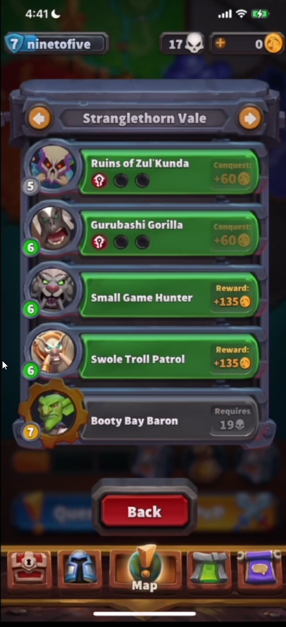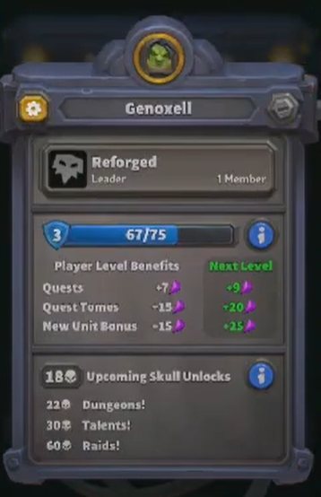 Dans la partie supérieure de l'interface du jeu (donc lorsque vous êtes dans les menus de Warcraft Arclight Rumble), vous constaterez la présence des trois éléments importants suivants :