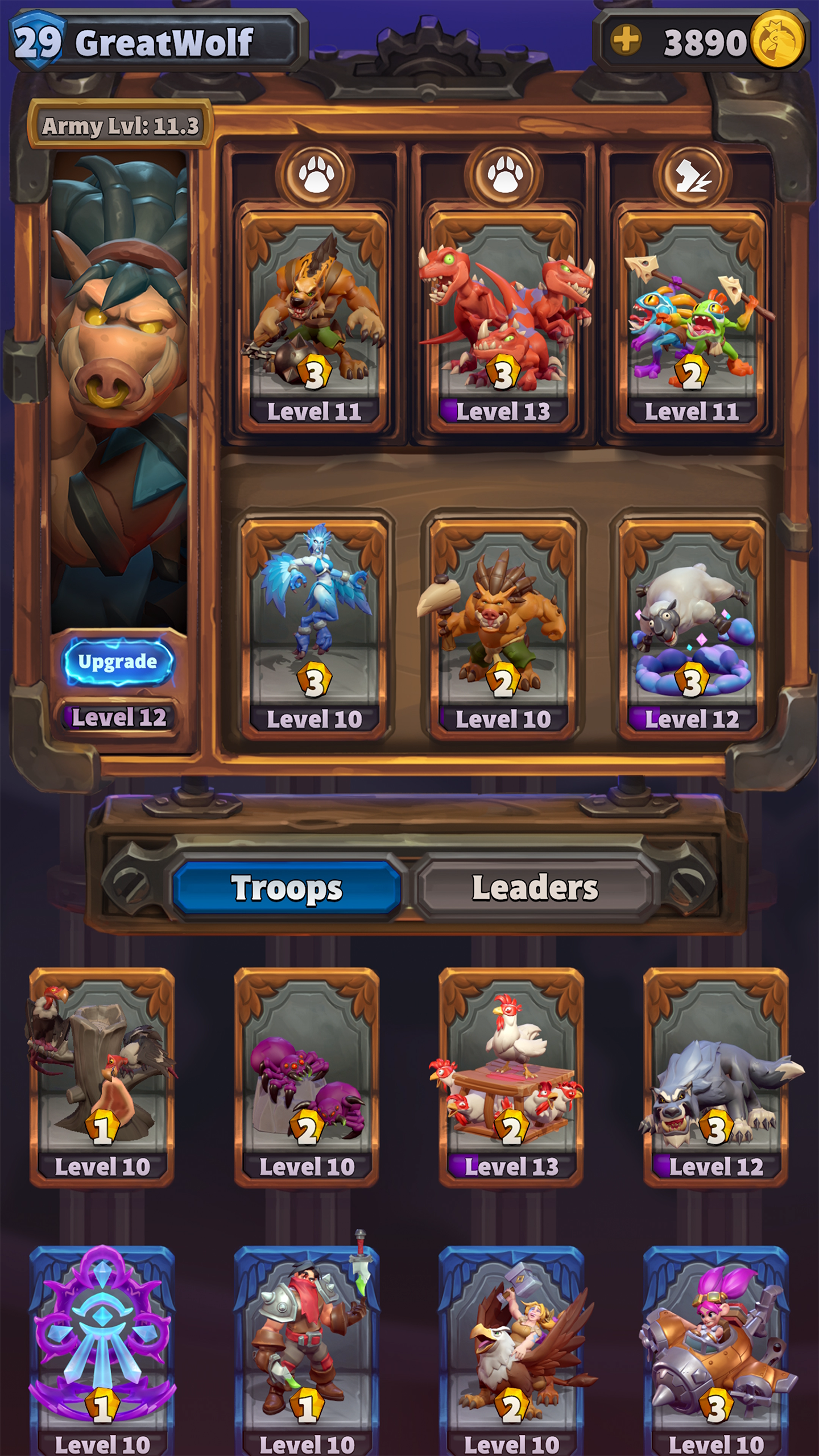 Bêtes : Les chefs de type bêtes comme Charlga Trancheflanc peuvent neutraliser les défenses adverses, ce qui permettra à vos nombreuses bêtes alliées de charger et de les submerger rapidement. D’autres chefs comme Lardeur préfèrent déchaîner un déluge de troupes rapides sur l’adversaire.