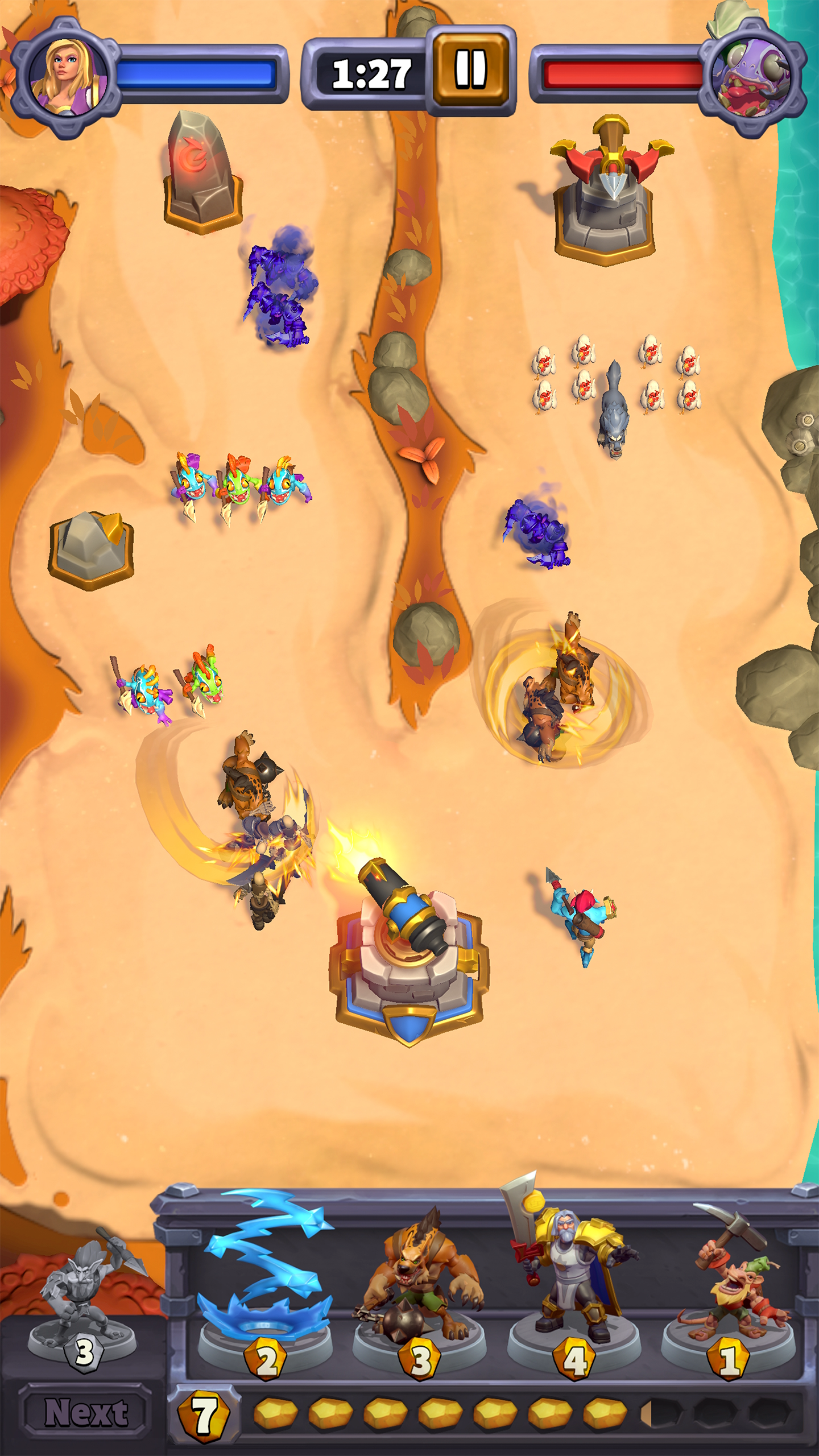 Vos figurines ont besoin d’un endroit où se défouler ! Avec plus de 70 cartes disponibles, vous allez pouvoir vous amuser. Progressez en combattant sur diverses cartes à plusieurs voies et affrontez des adversaires de plus en plus coriaces à mesure que vous montez de niveau et que vous améliorez vos compétences.
